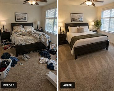 Our organization service is designed to turn cluttered, messy areas into clean, functional, and easy-to-maintain spaces. We don’t just tidy up—we create systems that help keep your home organized long after we’re done.